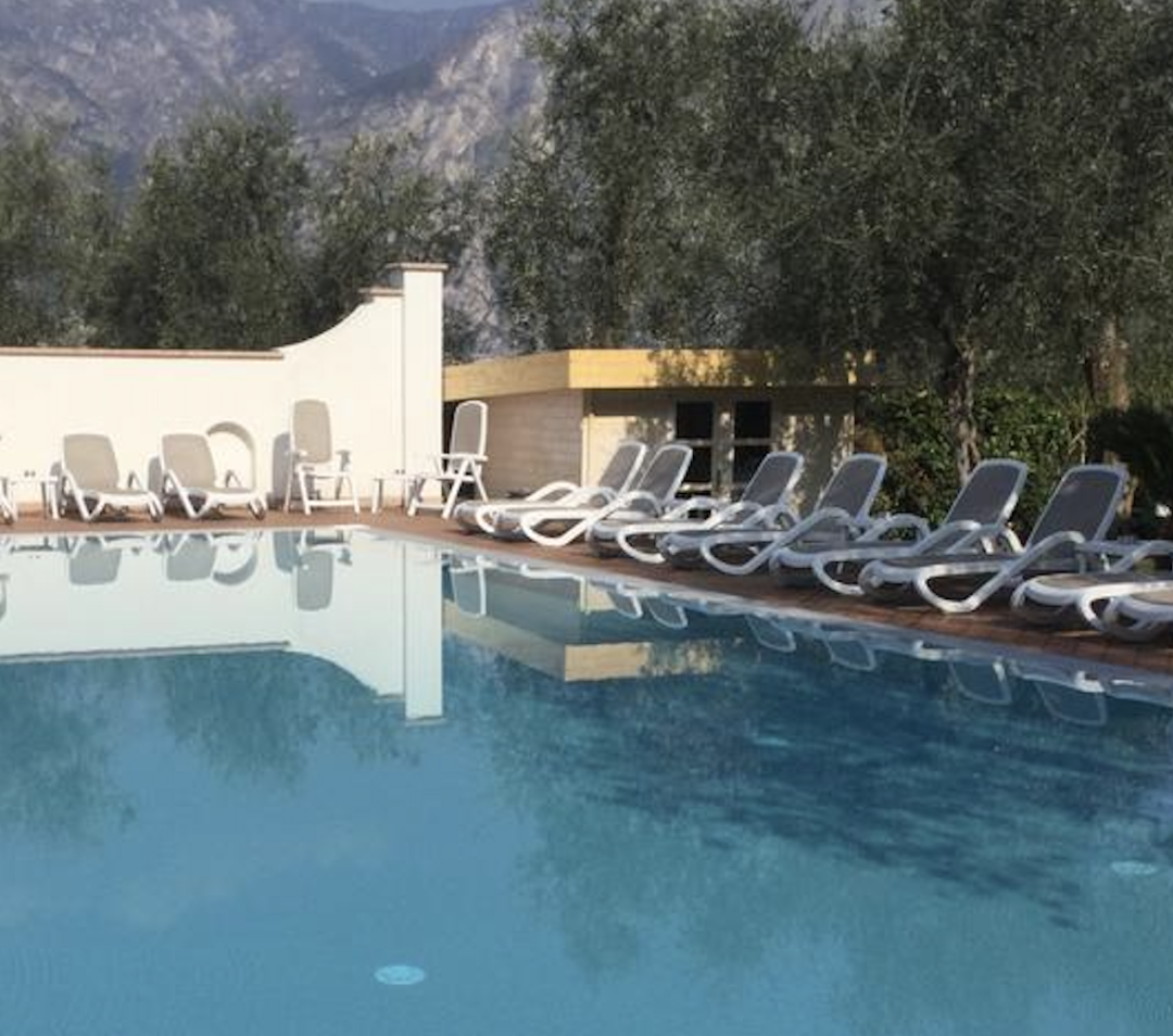 Questo un esempio dove la casetta di legno ben si sposa con la splendida piscina di un hotel del Lago di Garda e con gli ulivi presenti nel giardino della piscina. Scelte simili sono fatte anche da Country-Club o Golf-Club che necessitano di vani di design ad alto impatto estetico-architettonico a ridosso dei campi da gioco oppure dei bar open-air. Le casetta prefabbricata è dotata di porta completamente vetrata. Sia il tetto che il pavimento sono composti da assi di spessore 18mm e la tettoia frontale sborda per circa 40cm. Il tetto, dalla linea piatta, ha in realtà una pendenza pari a 3 gradi al fine di permettere l'asportazione dell'acqua piovana, senza intaccare il design della casetta.