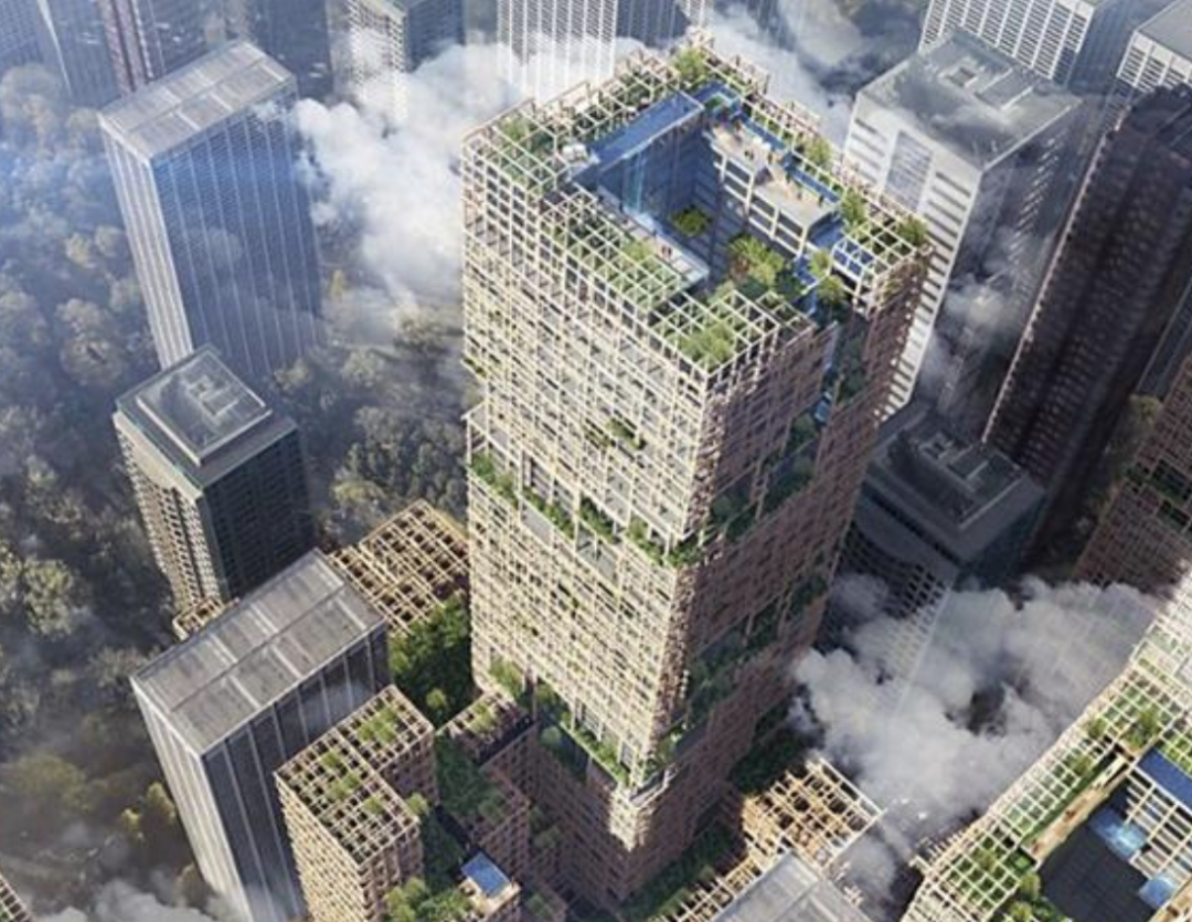 L’utilizzo del legno per la costruzione di grattacieli e strutture edilizie che si sviluppano in altezza è una delle nuove frontiere, attraversate sempre più spesso da architetti e progettisti in diverse parti del mondo. A Stoccolma sarà ultimato per il 2023 un palazzo di 34 piani destinato a scopi residenziali con tecniche costruttive ibride: struttura in cemento armato, interni in legno. A Chicago è stato presentato il progetto di un grattacielo di 228 metri di altezza, composto da due torri di altezza differente collegate tra di loro, sempre destinato principalmente a scopo residenziale. Attualmente, la struttura edilizia in legno più alta esistente è a Vancouver, in Canada: una residenza per gli studenti della University of British Columbia, alta 53 metri e assemblata in soli 70 giorni l’estate dello scorso anno grazie a elementi prefabbricati.