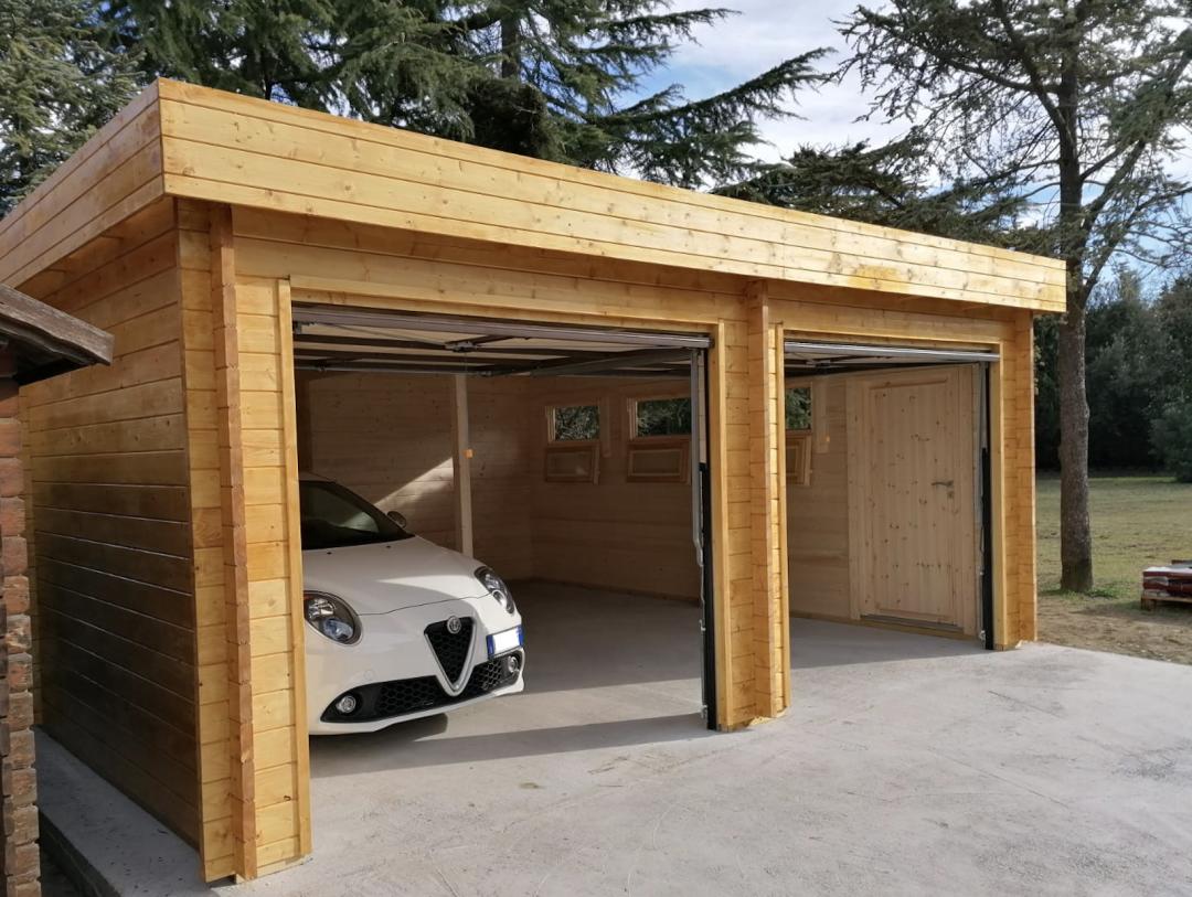 SATIN: "avevo già un garage in legno blockhouse comprato molti anni fa. Un garage singolo sempre a struttura blockhouse che mi ha protetto una auto per tanti anni. Ora che la famiglia è cresciuta e di auto ne abbiamo tre, abbiamo deciso non solo di cambiare il vecchio garage singolo ma anche di posizionarne uno doppio a fianco per poter ricovere tutte le tre auto ed avere anche spazio addizionale per immagazzinare box e cartoni. Entrambi li abbiamo acquistati da Casette Italia perche non volevamo scendere a compromesso con la qualità del prodotto. Preferisco spendere qualcosa in più ma avere dei garage belli, robusti e che mi durano 30 anni. Infatti, ho scelto per entrambi la versione moderna, ovvero con tetto piatto, ampio fascione perimetrale del tetto e design molto lineare. Questo tipo di linee si sposa perfettamente con la mia casa moderna. Per tutti i 3 portoni ho scelto le porte basculanti HORMANN con motorizzazioni dei basculanti. Anche per esse ho scelto il meglio: portone con perline in legno della medesima essenza del resto del garage. Casette Italia ha fatto un ottimo lavoro nel produrre questi garage e la squadra di montatori locali, di Padova, sono riusciti a montare il garage doppio in un sol giorno: 4 persone davvero brave e veloci. Mi hanno hanche tinteggiato il garage con impregnante dopo il montaggio."