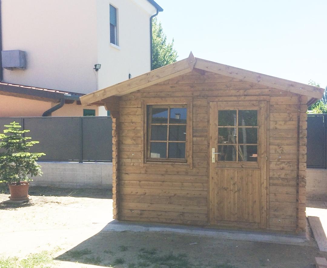Progettata con sistema BLOCKHOUSE e tetto a doppia falda, come tutte le nostre casette in legno ha la possibilità di invertire la parete frontale disponendo sia porta a sinistra e finestra a destra che viceversa. E' ideale per multipli scopi dove stile e robustezza sono importanti: ripostiglio da giardino per l’estate e l’inverno,  capanno porta attrezzi e bricolage, casetta giochi per bambini, vano lavanderia-asciugatrice, casetta relax, ed altri utilizzi che possono valorizzare il tuo giardino (anche d’inverno grazie alla facilità di riscaldamento della casetta dalla elevata efficienza energetica). Gli infissi sono in legno laminato per assicurare massima rigidità e durata a tutta la struttura.