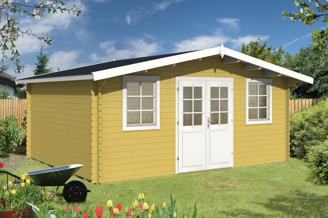 Progettata con sistema BLOCKHOUSE e tetto a doppia falda. Grazie al suo doppio vano con ingressi autonomi è ideale per multipli scopi dove stile e robustezza sono importanti. Le porte e le finestre sono state fabbricate da legno incollato particolarmente secco (8-12%). Il davanzale della porta è di acciaio inossidabile.