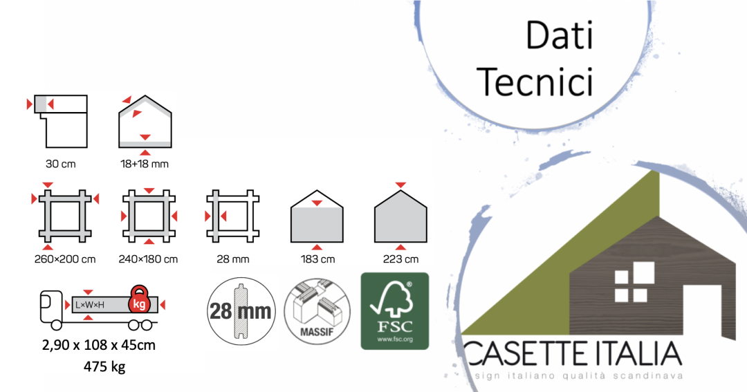 Rinforzi anti-tempesta: Tutte le casette hanno rinforzi anti-tempesta in legno oppure barre filettate invisibili all’interno delle pareti. Essi consolidano la struttura contro tempeste e sisma.