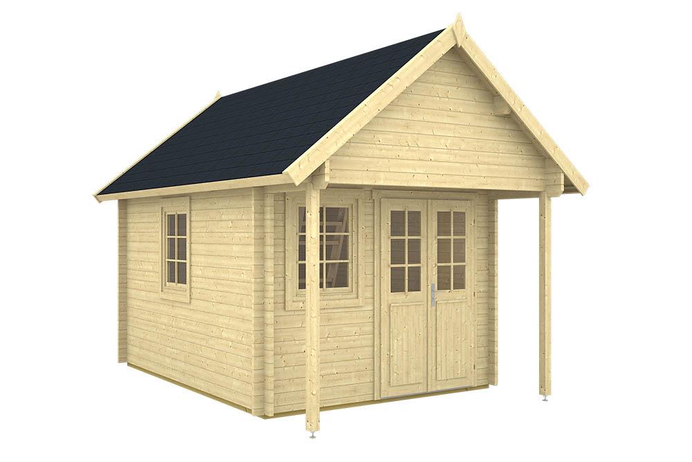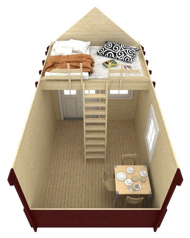 Casetta in legno di abete nordico caratterizzata da una altana interna che permette di avere una piccola zona notte rialzata. Design "country" questa casetta a unico grande vano interno al piano terra e con altana da circa 5mq, prevede una porta semifinestrata ed due finestre singole ad apertura sia battente che basculante, quindi lo spazio interno risulta molto luminoso. La tettoia frontale sborda per 1m dando la possibilità di riparo da sole e pioggia. Le pareti sono costruite con sistema BLOCKHOUSE in legno massello da 40mm ed i serramenti sono robusti ed isolanti per un utilizzo in tutte le stagioni. Infatti, il bungalow garantisce un ottimo isolamento termico anche nella stagione invernale (leggi maggiori informazioni a questa pagina: certificazione-energetica-della-casetta-legno), in quanto permette un riscaldamento veloce ed uniforme con un alto comfort climatico interno. Il pavimento in legno è incluso.