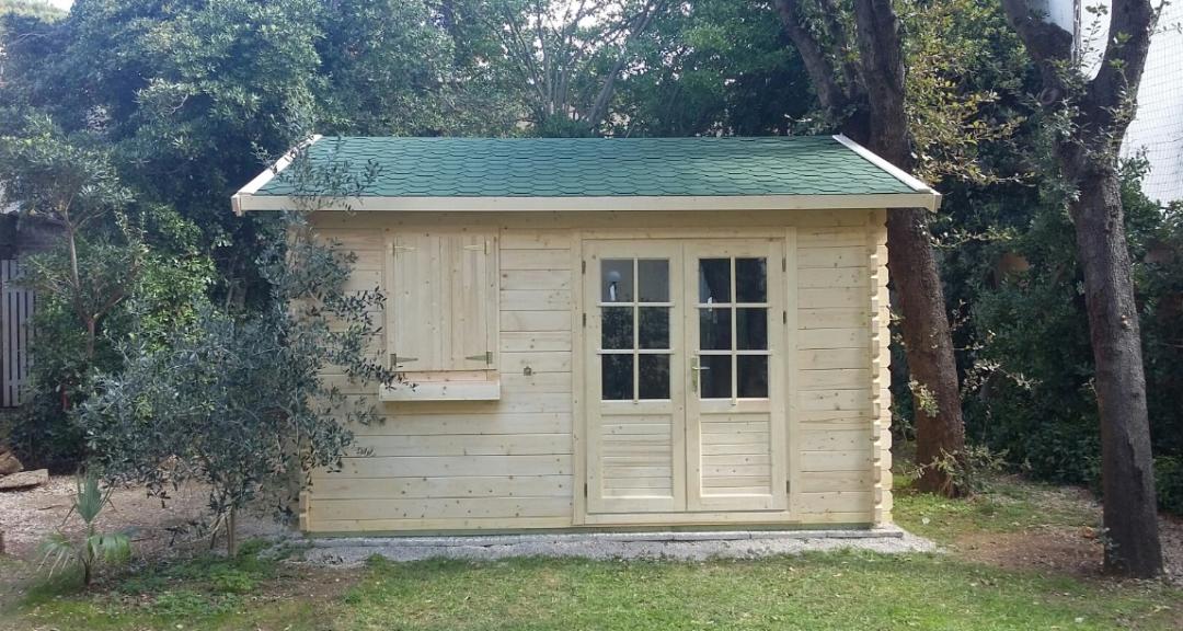 Casetta solida e robusta, è realizzata con sistema BLOCKHOUSE e con tetto a doppia falda disposto ortogonalmente rispetto la facciata frontale. Questa casetta è perfetta per molti usi sia in giardino che in un terreno in campagna: serra invernale, vano lavanderia-asciugatrice, casetta relax, casetta ufficio, casetta abitativa estiva ed altri utilizzi che possono valorizzare il tuo giardino (anche d’inverno grazie alla luminosità e facilità di riscaldamento). Gli infissi sono in legno laminato per assicurare massima rigidità e durata a tutta la struttura. Porte e finestra sono prodotte con meccanismi di alta qualità e la finestra è apribile sia con movimento battente che basculante. Inoltre, è dotata di scuri esterni e del porta-vasi frontale.
