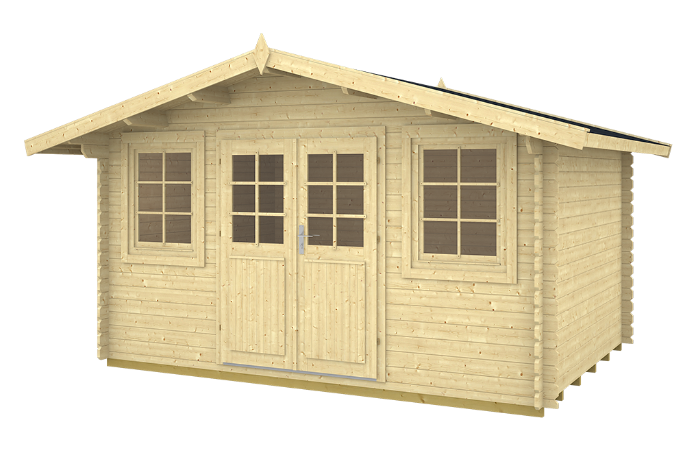 Progettata con sistema BLOCKHOUSE e tetto a doppia falda. Grazie al suo doppio vano con ingressi autonomi è ideale per multipli scopi dove stile e robustezza sono importanti. Le porte e le finestre sono state fabbricate da legno incollato particolarmente secco (8-12%). Il davanzale della porta è di acciaio inossidabile.
