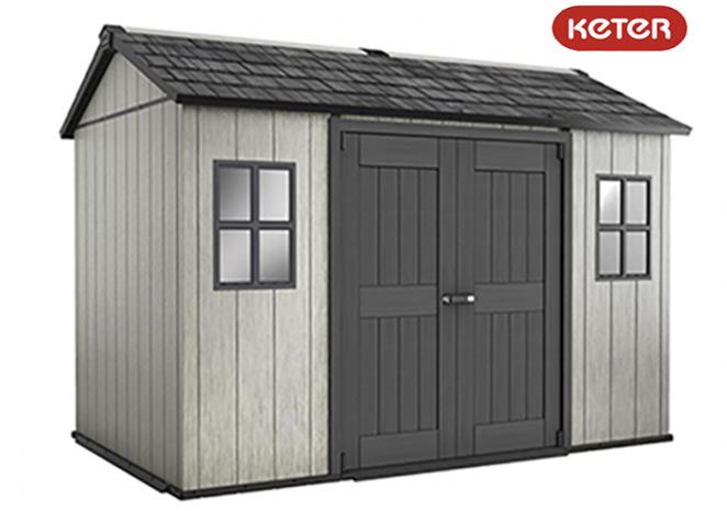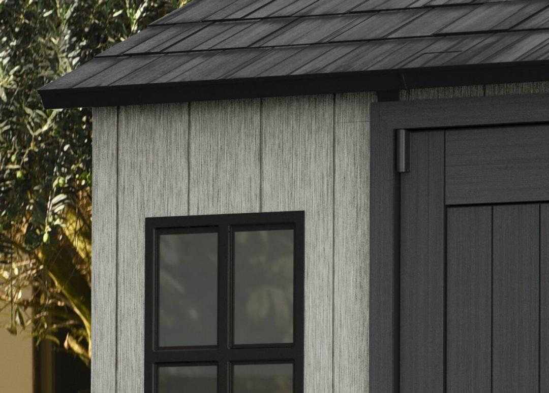 Questa casetta da giardino in legno-plastica Keter è fornita di un ampio lucernario sul tetto che corre su tutta la lunghezza e di due finestre fisse sulle ante della porta per massimizzare la luce naturale. Inoltre sono presenti altre due finestre sul lato della casetta, dallo design moderno ed essenziale. Il tetto, inoltre, è rinforzato con acciaio per garantire la massima resistenza al carico neve. La casetta è dotata di una griglia di ventilazione molto efficiente che permette un continuo ricambio di aria al suo interno, quindi consente la fuoriuscita di odori ed affini (senza permettere l’ingresso di insetti o altri animali). Il tetto è esteticamente molto bello con una struttura 3D che richiama l’effetto tegola.