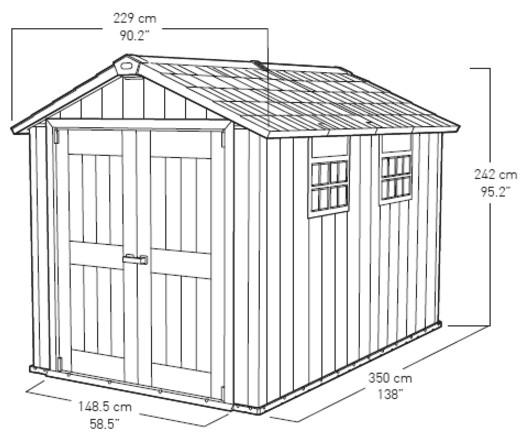 Internamente lo spazio a disposizione è molto ampio e funzionale; consente ampio spazio di magazzino per piccoli e medi attrezzi, scatole, cartoni, ecc. Il pavimento è incluso e di facile montaggio. Inoltre la particolare ingegnerizzazione delle casette Keter permette al pavimento di essere ben isolato dal terreno sottostante, quindi di non risentire dell’eventuale umidità presente nel terreno stesso. Infine si sottolinea che il pavimento in resina è ad alta resistenza (resiste a più di 300PSI ovvero 20 atmosfere), quindi permette di alloggiare all’interno della casetta anche macchinari pesanti come moto o simili. Si sottolinea che questo tipo di casetta in PVC non necessita di alcuna autorizzazione comunale grazie sia alla sua leggerezza che non richiede alcun basamento, e grazie alla sua metratura (inferiore alla soglia minima per dover richiedere un permesso a costruire).