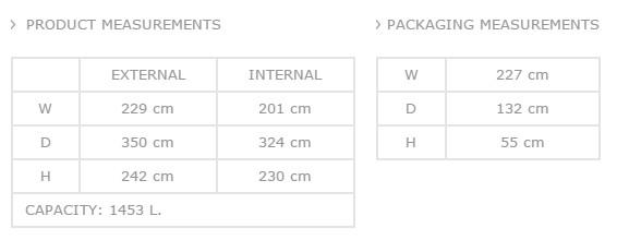 - Struttura robusta e stabile con rinforzi in acciaio. Testata a carico neve 75kg/mq