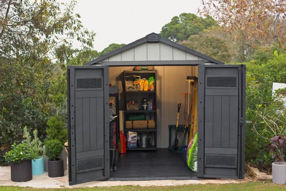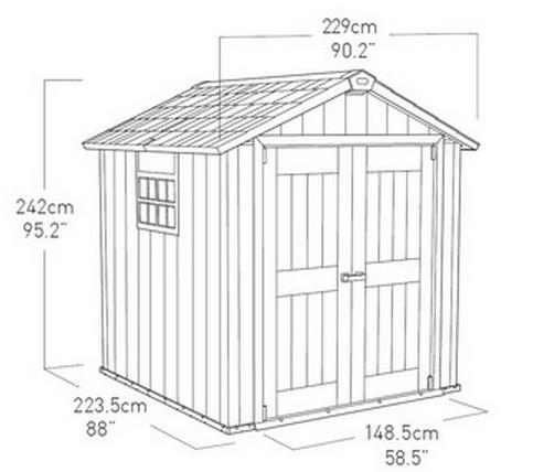 Internamente lo spazio a disposizione è molto ampio e funzionale; consente ampio spazio di magazzino per piccoli e medi attrezzi, scatole, cartoni, ecc. Il pavimento è incluso e di facile montaggio. Inoltre la particolare ingegnerizzazione delle casette Keter permette al pavimento di essere ben isolato dal terreno sottostante, quindi di non risentire dell’eventuale umidità presente nel terreno stesso. Infine si sottolinea che il pavimento in resina è ad alta resistenza (resiste a più di 300PSI ovvero 20 atmosfere), quindi permette di alloggiare all’interno della casetta anche macchinari pesanti come moto o simili. Si sottolinea che questo tipo di casetta in PVC non necessita di alcuna autorizzazione comunale grazie sia alla sua leggerezza che non richiede alcun basamento, e grazie alla sua metratura (inferiore alla soglia minima per dover richiedere un permesso a costruire).