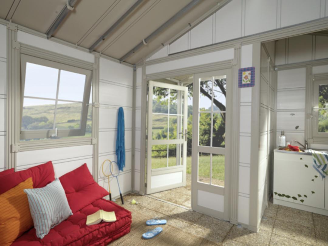 La casetta da giardino in PVC modello DECO 20B è totalmente abitabile grazie ai suoi ampi spazi interni. É pensata per essere utilizzata sia nella stagione estiva che nelle stagioni intermedie come ampio vano aggiuntivo alla vostra abitazione, per pranzi e cene in giardino, come laboratorio artistico o per il fai-da-te, come vano cantina per riporre infinIti oggetti durante l'inverno.