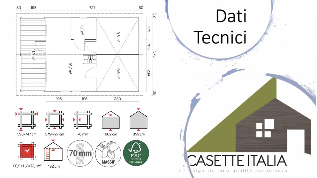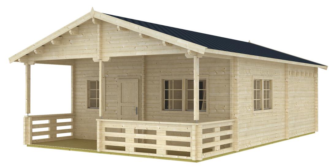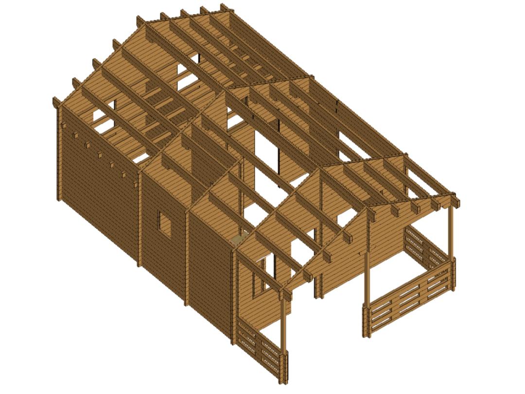 Chalet in legno massello in abete nordico naturale caratterizzato da una altana di 20mq utilizzabile come camera da letto o studio. Composto da robusta porta d'ingresso che congiunge l'ampia terrazza-loggiata fronte chalet con i vani interni. La terrazza, coperta e con parapetto, permette di godersi bei momenti all'aperto come pranzi e cene con amici anche nelle ore calde o piovose. Internamente è presente un ampio vano open-space finalizzato a sala con predisposizione spazio per angolo cucina, 2 camere da letto, un bagno e l'altana. Le pareti sono costruite con sistema BLOCKHOUSE in legno massello da 70 mm (questo modello è disponibile anche con pareti di 58mm) ed i serramenti sono robusti ed isolanti per un utilizzo in tutte le stagioni. Infatti, lo chalet garantisce  una ottimo isolamento termico anche nella stagione invernale, in quanto permette un riscaldamento veloce ed uniforme con un alto comfort climatico interno. All'interno dei luminosi vani (6 finestre totali tutte ad apertura sia battente che basculante, di cui una doppia-finestra e 5 singole) è possibile installare a piacimento gli eventuali impianti elettrici e idraulici. I serramenti sono robusti ed isolanti per un utilizzo in tutte le stagioni. Infatti, lo chalet garantisce  una ottimo isolamento termico anche nella stagione invernale, in quanto permette un riscaldamento veloce ed uniforme con un alto comfort climatico interno. All'interno degli ampi e luminosi vani è possibile installare a piacimento gli eventuali impianti elettrici, idraulici, scarico cucina, ecc.