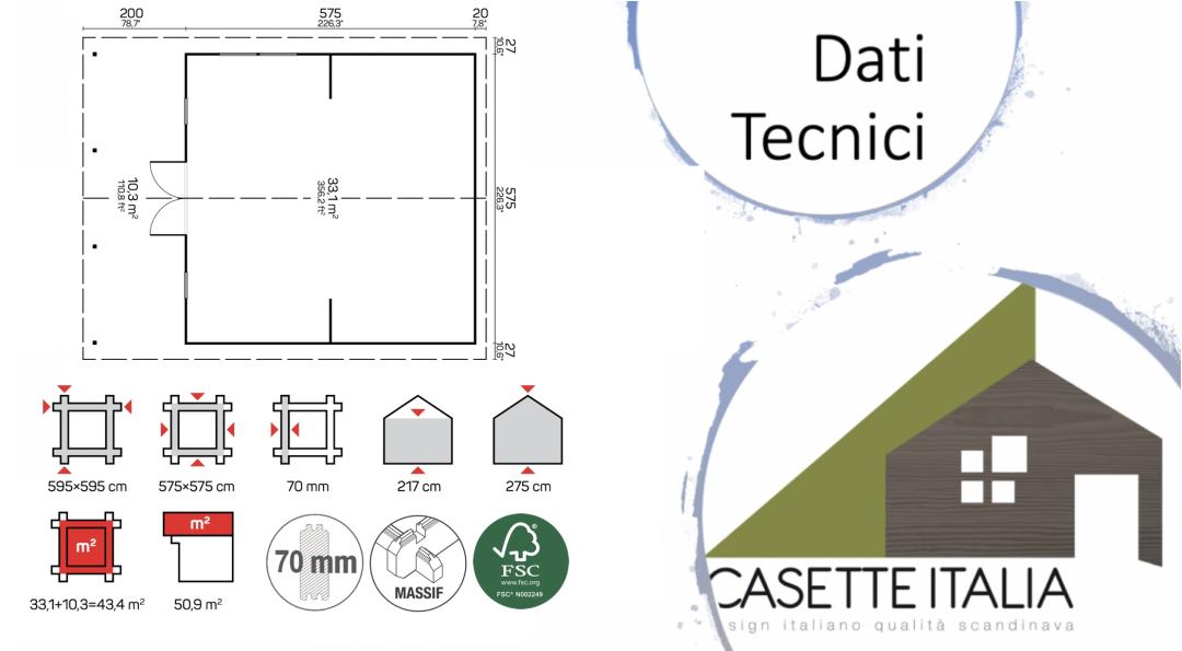 Rinforzi anti-tempesta: Tutte le casette hanno rinforzi anti-tempesta in legno oppure barre filettate invisibili all’interno delle pareti. Essi consolidano la struttura contro tempeste e sisma.